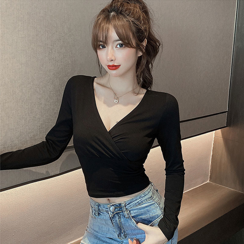 Essential Long Sleeve V-neck Crop Top